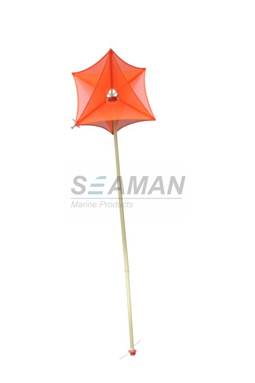 (3)Inset the 20cm long beanpole connected to refletion equippment to the hole on top sail of the raft,then insert it to the stainless steel up-and-down bracket in the body of the raft,at last screw tight all the plastic bolt & nut. make sure they firmly fixed to the bottom of the raft